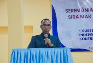 ”Objetivo Ceremonia ba loron ohin Ita hala’o iha ne’e Importante tebes No sai mos historia Prosesu Konstrusaun Estado nian/ no tama mos ba iha Dezenvolvemento Admistrasaun Timor Leste nian Ceremonia Ida ne’e mos ita atu FO rekonesimentu Profunda Digno Ba Funcionario Publiku Hamutuk 1.985 Entre Rihun Ida resin ne’e Maioria Profesores Sira ne’ebe Mak servisu iha Estado Timor Leste Ho dedikasaun responsabilidade no ispiritu misaun iha tinan Barak Hateten husi PKF Agustinho Letencio De Deus”
